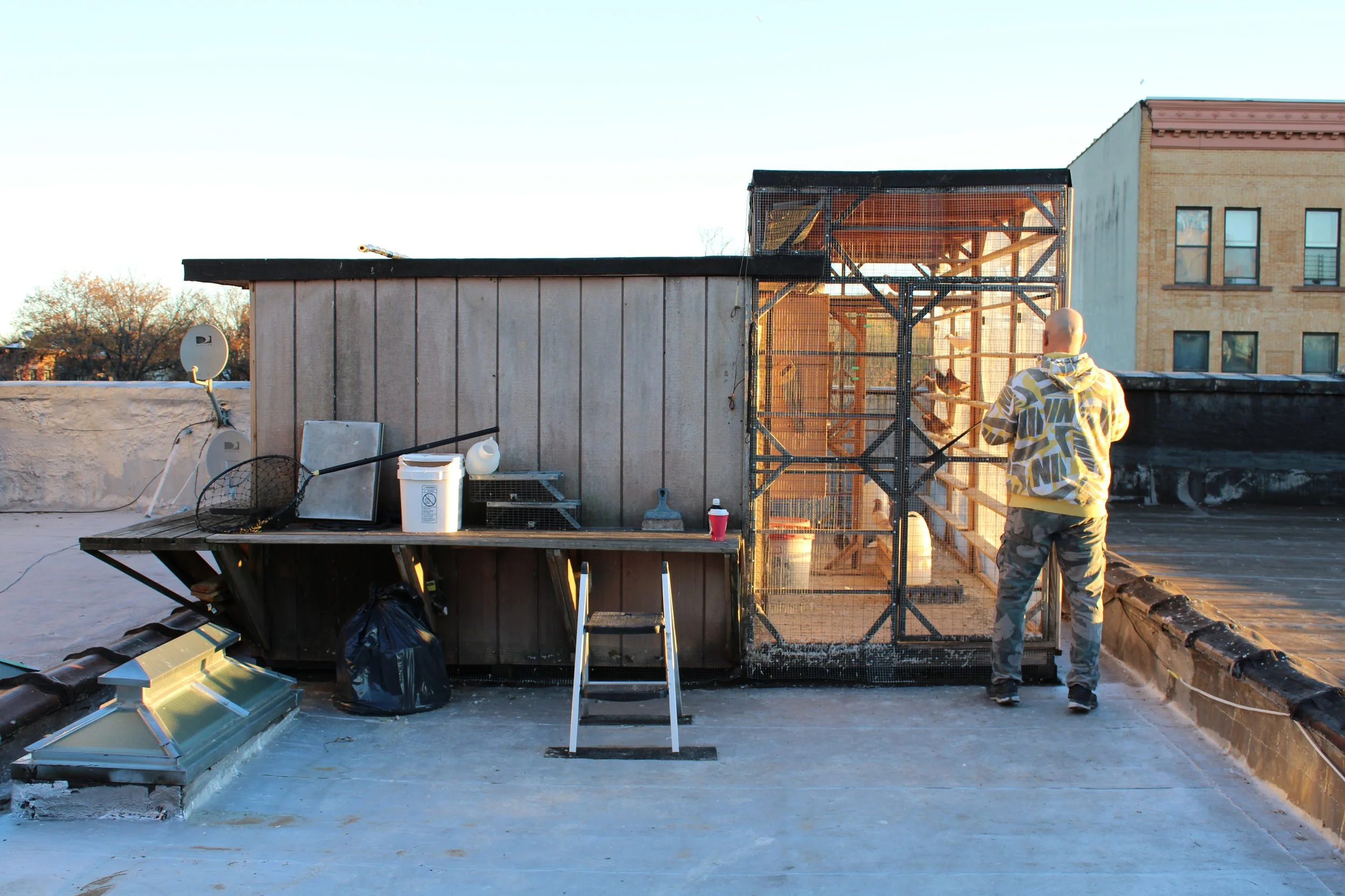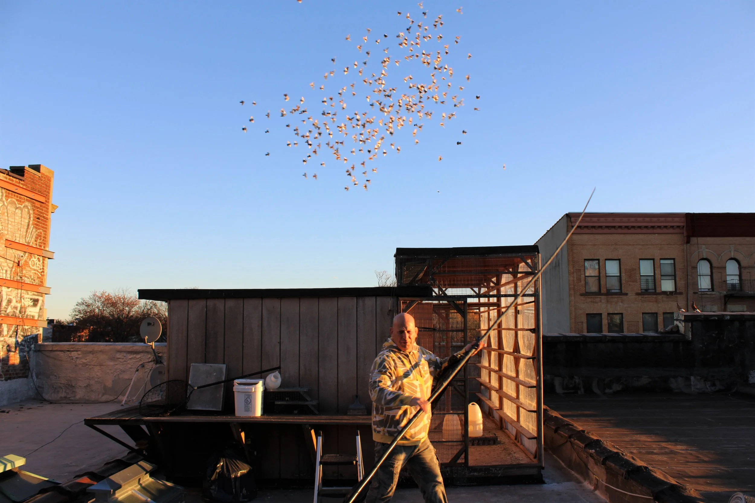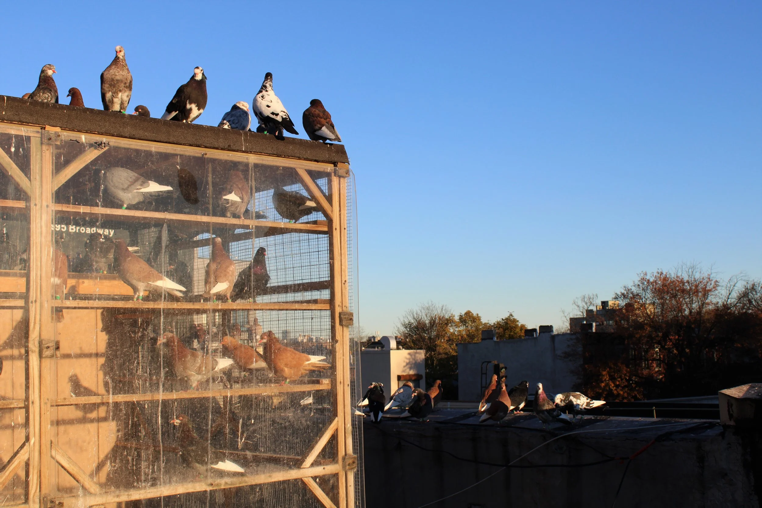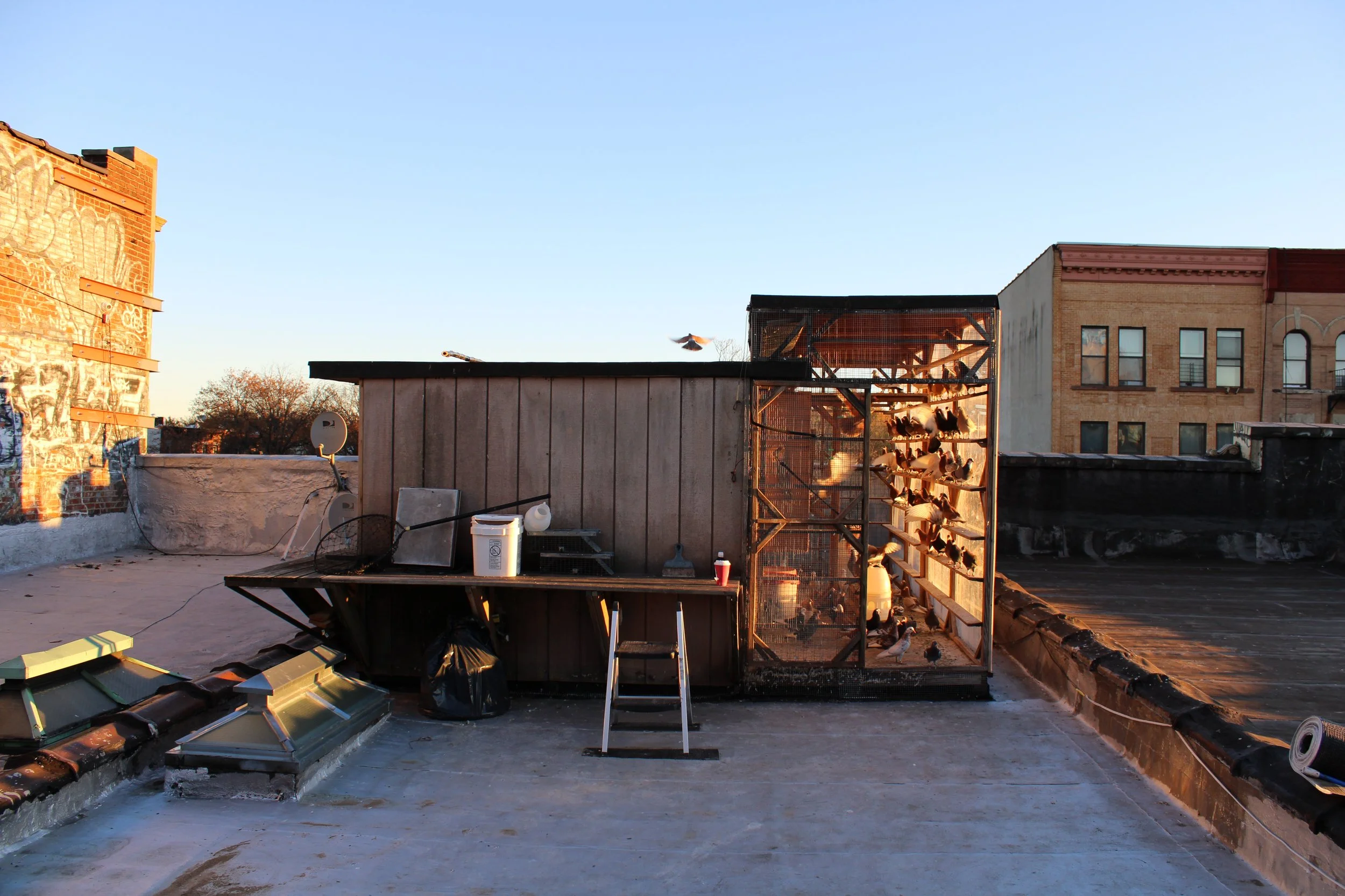 To contrast this broad analysis, a series of textual interjections in the form of interviews and photographs excavates a specific symbiotic relationship that, although dwindling, has stood the test of time for many generations and even bridged social and racial divisions. Pigeon keeping (also called breeders, flyers, even mumblers), is a time-honored practice that had its zeitgeist in the 50’s, when thousands of rooftop “lofts” or coops were scattered all over lower Manhattan, The Bronx, Queens and Brooklyn. Urban sociologist and researcher Colin Jerolmack explains how the craft is disappearing, a consequence of a combination of economic, bureaucratic, and generational shifts, but that this recipe is precisely what makes it so special nowadays: